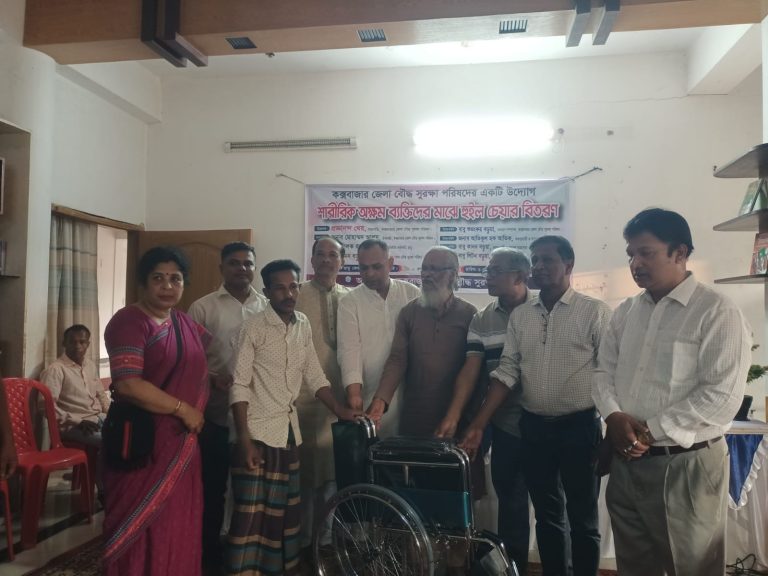 মানবিক সহায়তা ও সামাজিক দায়বদ্ধতার অংশ হিসেবে কক্সবাজার জেলা বৌদ্ধ সুরক্ষা পরিষদের উদ্যোগে শারীরিকভাবে অক্ষম ব্যক্তিদের মাঝে হুইল চেয়ার বিতরণ করা হয়েছে।